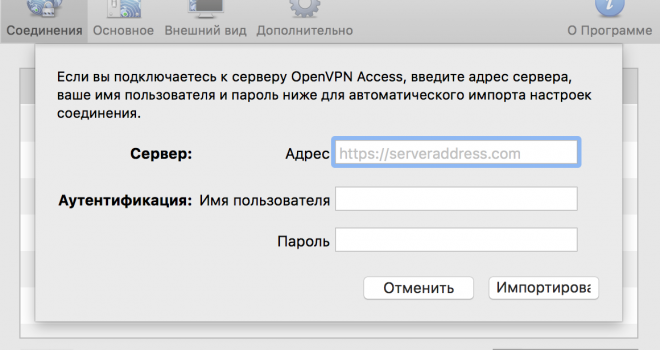 Подключение к серверу и импортирование настроек VPN для Viscosity Опубликовано: 25.03.2016 by captain Подключение к серверу и импортирование настроек VPN для Viscosity